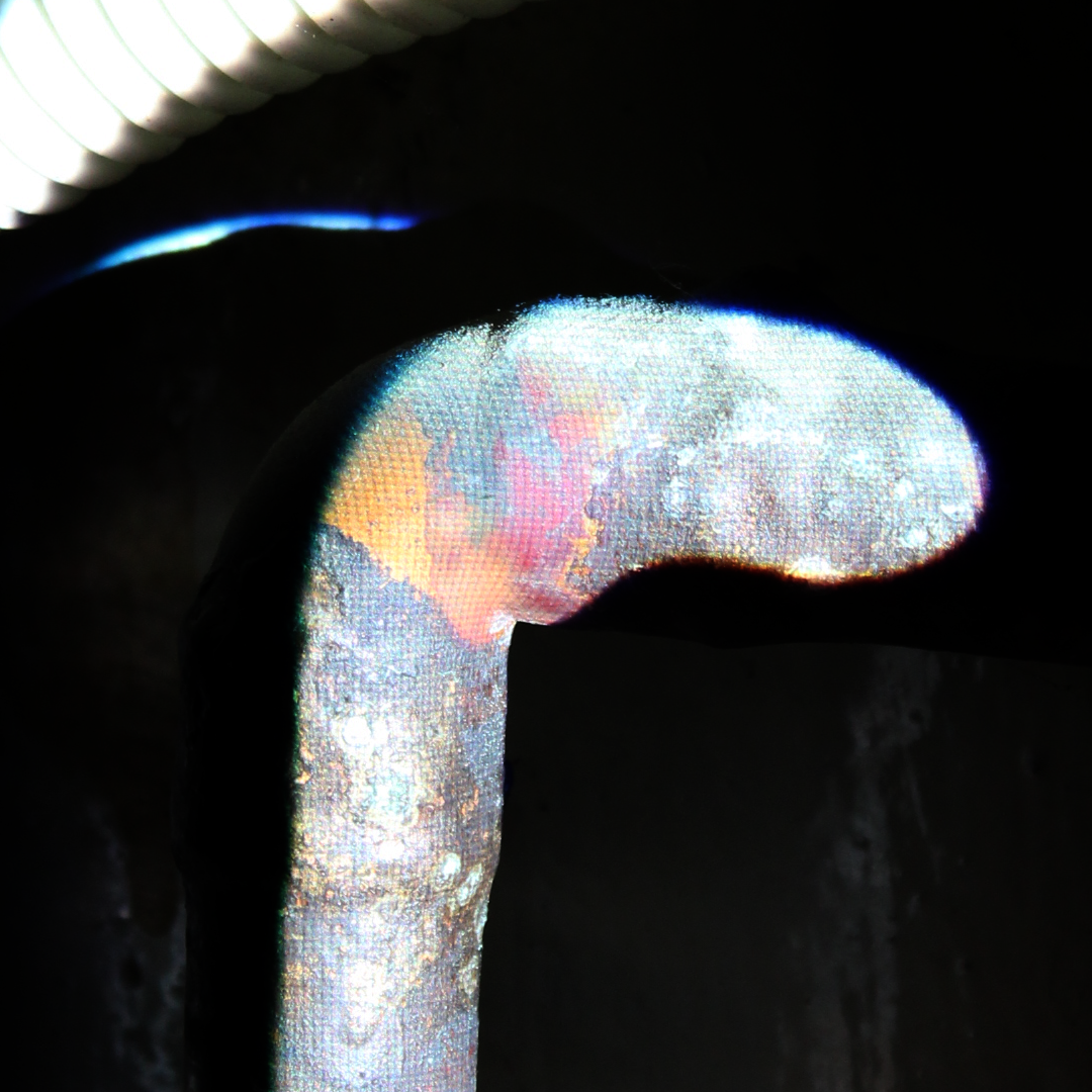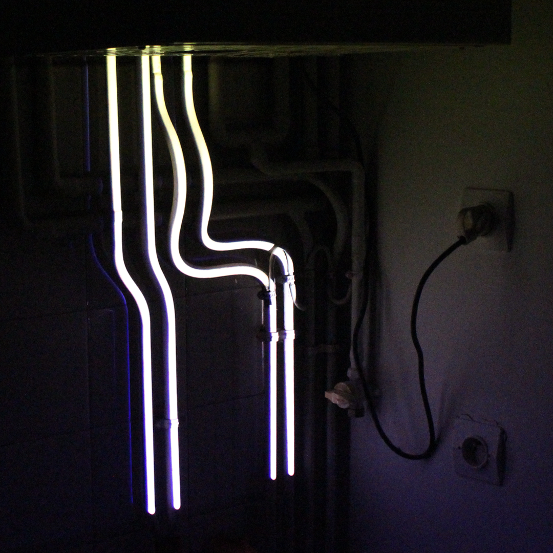 It being a daily task made it an interesting challenge as it would limit the time spent on each projection, I instead focused on finding a variety of expressions, be it on metal, rubber, a laundry basket, pipes, smoke, water reflections, a single letter on a keyboard or a large bathroom wall.